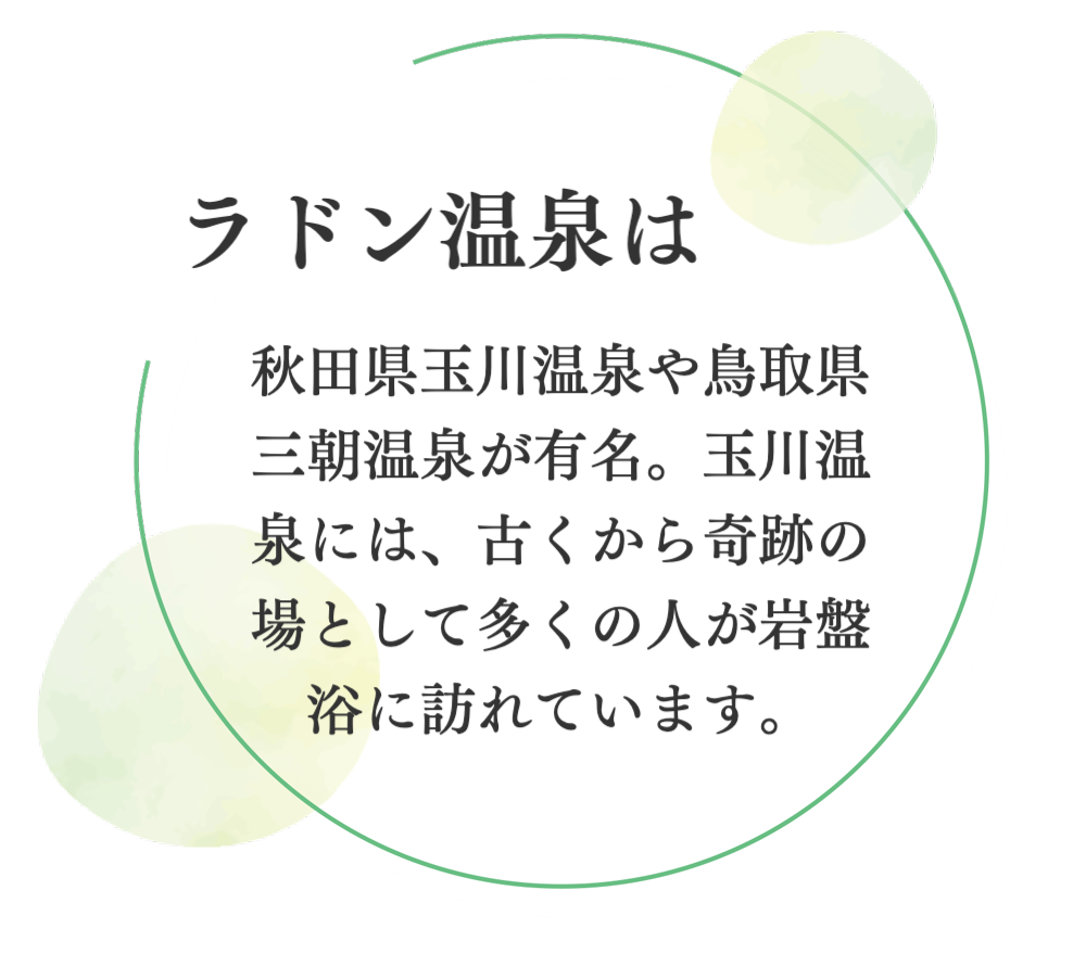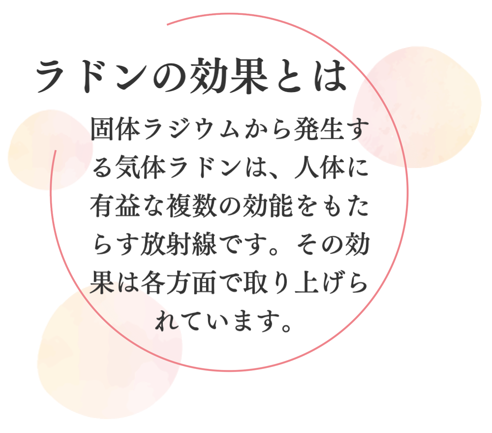 ラドンは、私たちの身体を正常化する力を発揮することが研究で明らかになってきています。細胞が刺激を受けて活性化し、細胞が復活することにより免疫力や治癒力を向上させることが期待できます。